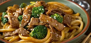 Z Japonii, ojczyzny sosów Kikkoman, pochodzi również udon. Podobnie jak makarony w Europie robi się go z mąki pszennej, soli i wody. Udon to najgrubszy makaron w kuchni japońskiej, który często serwuje się w gorącym bulionie. Bulion składa się z wywaru rybnego (dashi), sosu sojowego i mirinu. Można go doprawić odrobiną chili lub pikantnej mieszanki siedmiu przypraw (shichimi). Dodatki do takiej zupy to drobno posiekana dymka, krewetki i warzywa w tempurze (kakiage), tofu smażone w głębokim oleju (aburaage) oraz kamaboko – parówkarybna o charakterystycznym, półksiężycowym kształcie. Makaron, bulion i dodatki mogą mocno różnić się w zależności od regionu. Udon sprawdza się doskonale na patelni w wersji podsmażonej (yaki-udon) iświetnie pasuje do warzyw, mięsa lub ryby. Latem można go jeść również na zimno: w zupie czy w sałatce i koniecznie w towarzystwie sezonowych składników.