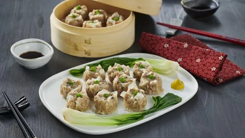 Shumai to odmiana pierożków gyoza. Są wykonane z nieco innego ciasta - i mają nieco inną formę. Te małe japońskie pierożki mają kształt pięknych kwiatów. Są wypełnione różnego rodzaju świeżymi składnikami - takimi jak mięso, grzyby shiitake i groszek - i doprawione naturalnie warzonym sosem sojowym Kikkoman. Formę kwiatu uzupełnia przybranie z zielonego groszku. Pierożki maczaj w mieszance sosu sojowego i musztardy. Pycha!