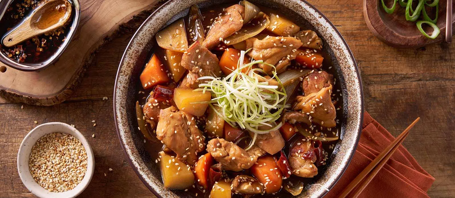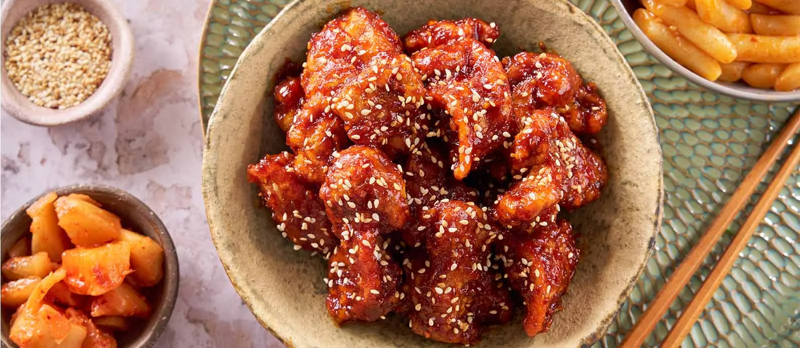 To, co wyróżnia koreańskiego smażonego kurczaka, to nie samo mięso, lecz szybki i łatwy w przygotowaniu sos. Potrzeba tylko odrobiny czosnku, imbiru, brązowego cukru, gochujang i oczywiście wysokiej jakości sosu sojowego, takiego jak Sos sojowy Kikkoman. Reszta zależy od kulinarnej fantazji szefa kuchni: nuggetsy z sosem można zaserwować jako przystawkę, potrawom z kurczakiem w roli głównej dodać to ekstra “coś”, a w inne smażone na głębokim tłuszczu dania, takie jak chipsy lub sznycle, tchnąć zaskakującą, egzotyczną nutę.