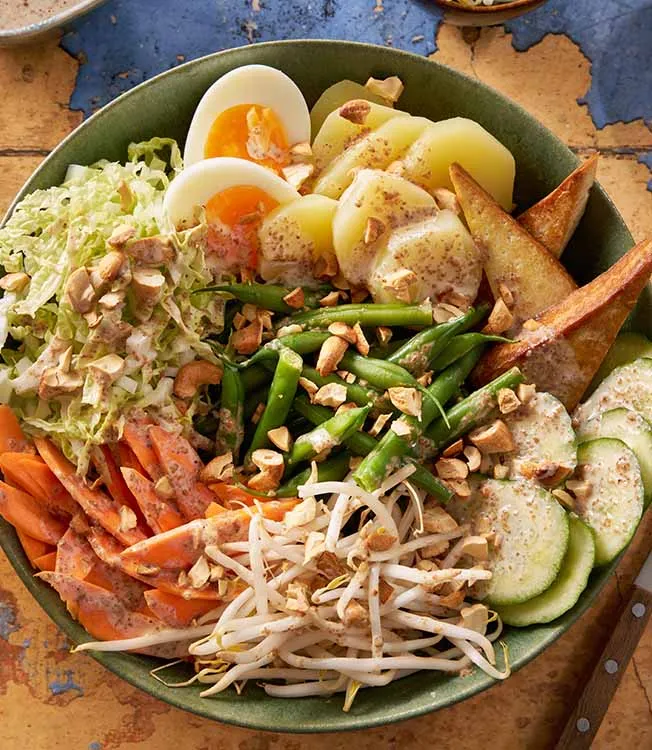 Indonezyjska sałatka gado-gado z sosem sezamowym