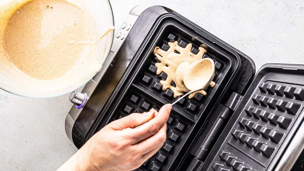 Mąkę gryczaną, skrobię i proszek do pieczenia wymieszaj w misce. Dodaj wodę, jajko, olej i Bezglutenowy sos sojowy Kikkoman. Wymieszaj do połączenia składników. Z powstałego ciasta upiecz gofry.