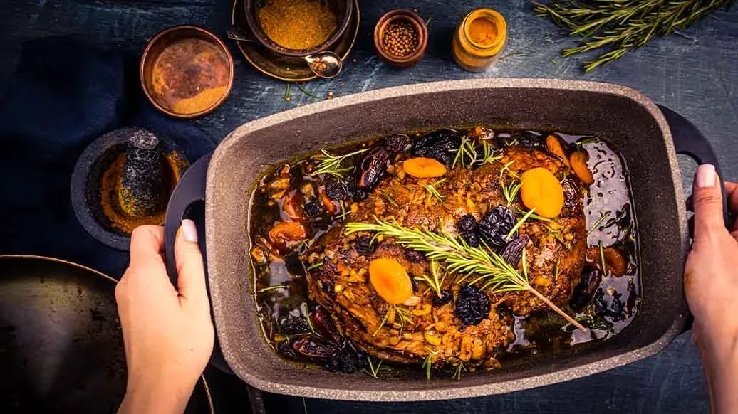 Jagnięcina marynowana w Sosie sojowym Kikkoman, imbirze i kurkumie i duszona z suszonymi śliwkami, daktylami i morelami. To słodko-wytrawne danie inspirowane kuchnią Bliskiego Wschodu będzie świetną propozycją na uroczysty obiad.