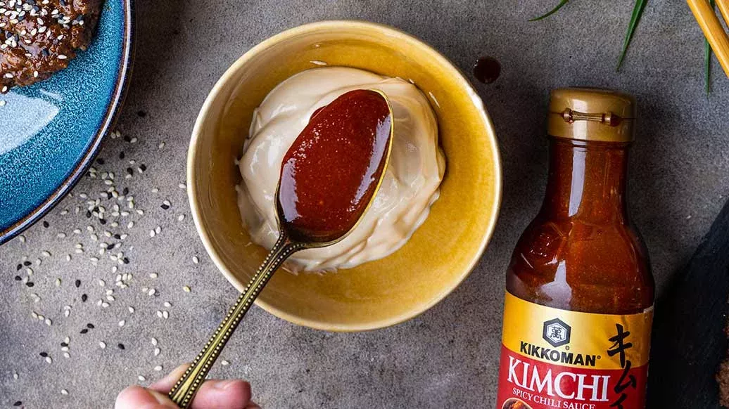 Wymieszaj majonez z Sosem z chili do kimchi Kikkoman.