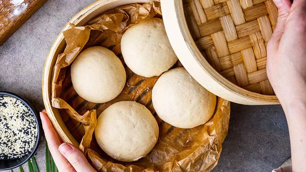 Przykryj i odstaw w ciepłe miejsce na ok. 60 min. Uformuj 4 bułeczki. Ponownie odstaw do wyrośnięcia. Gotuj na parze przez ok. 8 min.