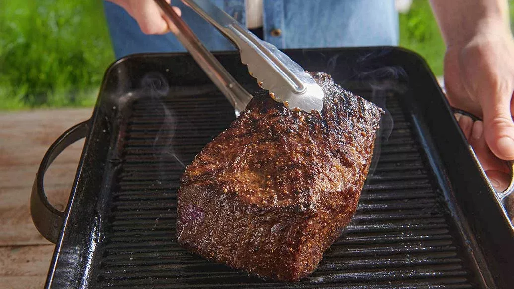 Ta soczysta pieczeń idealnie sprawdza się na zimno jako dodatek do kanapek i na ciepło jako danie główne prosto z grilla. Możesz przyrządzić ją tak, jak lubisz: średnio lub dobrze wysmażoną.
