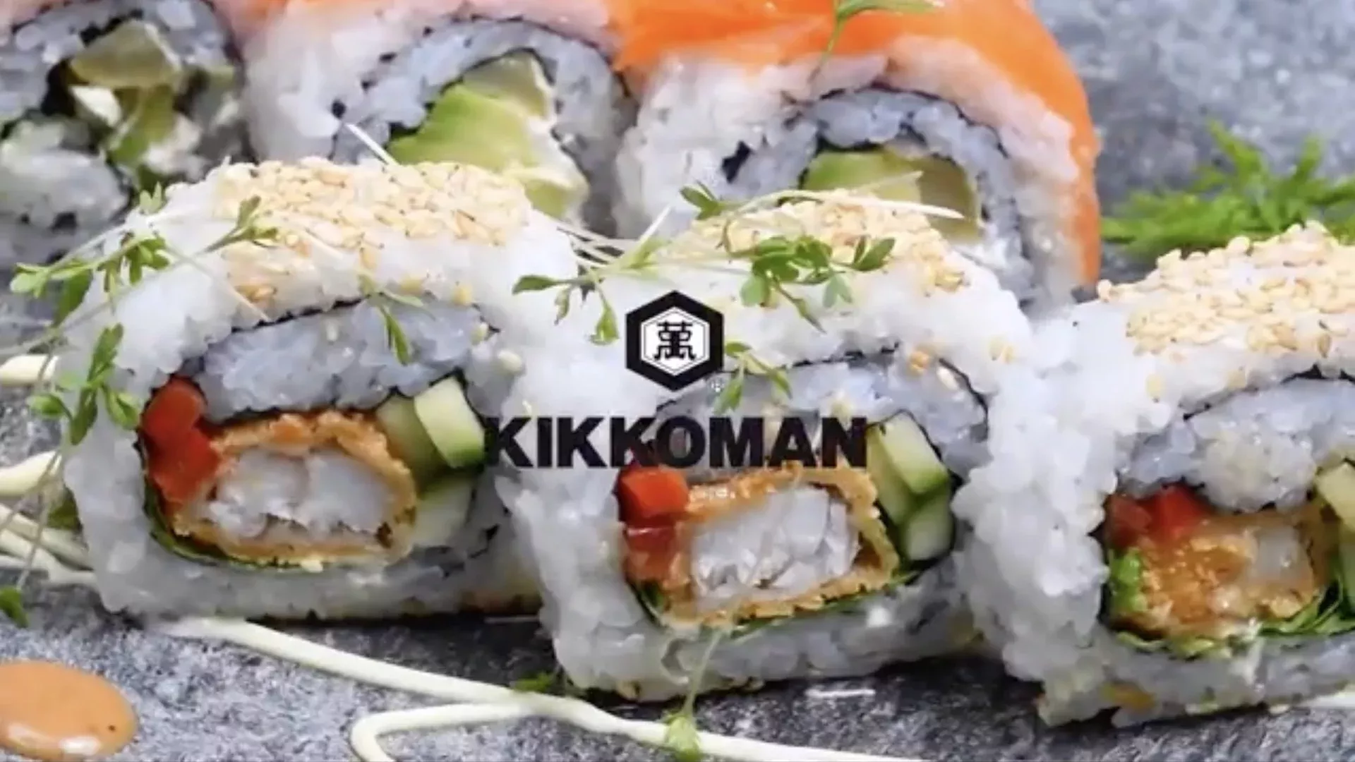 Udekoruj rzeżuchą, majonezem i dressingiem sezamowym Kikkoman.
